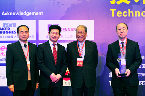 “第三屆cippe石油展展品創(chuàng)新金獎”由中國石油集團(tuán)鉆井工程技術(shù)研究院研發(fā)的LG360/50型連續(xù)管作業(yè)機(jī)折桂。第九屆、十屆全國人大常委會副委員長、國際金融論壇主席成思危先生為獲獎單位頒獎。