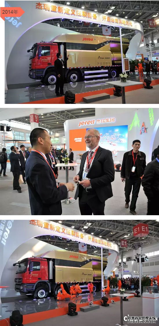 2014年,杰瑞攜帶目前世界上單機(jī)功率最大的壓裂車(chē)—阿波羅4500型壓裂車(chē),重新定義壓裂裝備, 開(kāi)啟油田渦輪時(shí)代。
