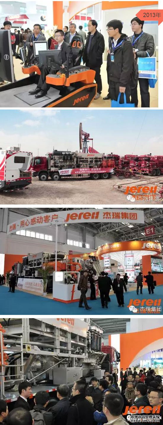 2013年,圍繞全球能源新挑戰(zhàn)以及頁(yè)巖氣等非常規(guī)能源開(kāi)發(fā)的需要,杰瑞闡釋了“小井場(chǎng)大作業(yè)”的新概念壓裂 解決方案,并展示了打破單機(jī)最高輸出水功率記錄的世界首臺(tái)3100型壓裂車(chē)、國(guó)內(nèi)第一臺(tái)閉式罐混砂車(chē)等多臺(tái)高端油田專用裝備。