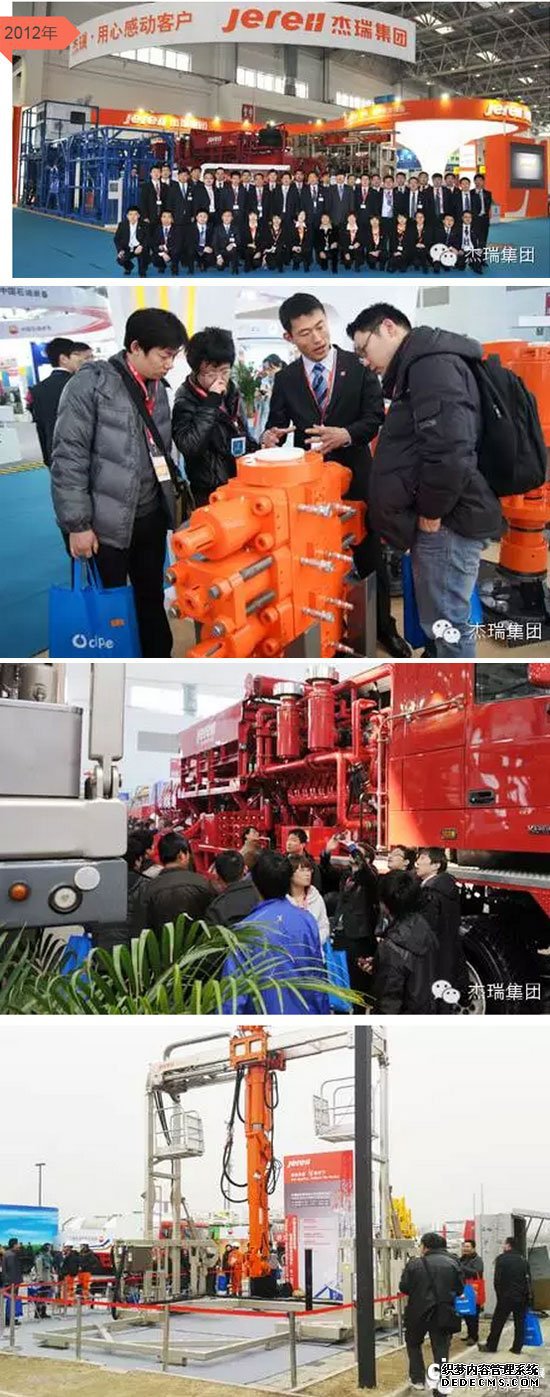 2012年,cippe展會(huì)上杰瑞最新研發(fā)和代表國(guó)內(nèi)最新技術(shù)水平的鉆機(jī)高空智能排管系統(tǒng)、340K不壓井作業(yè)設(shè)備、2500型壓裂車(chē) 、防爆連續(xù)油管橇組等高端油田專用設(shè)備亮相CIPPE。這也是杰瑞新logo第一次亮相展會(huì)。