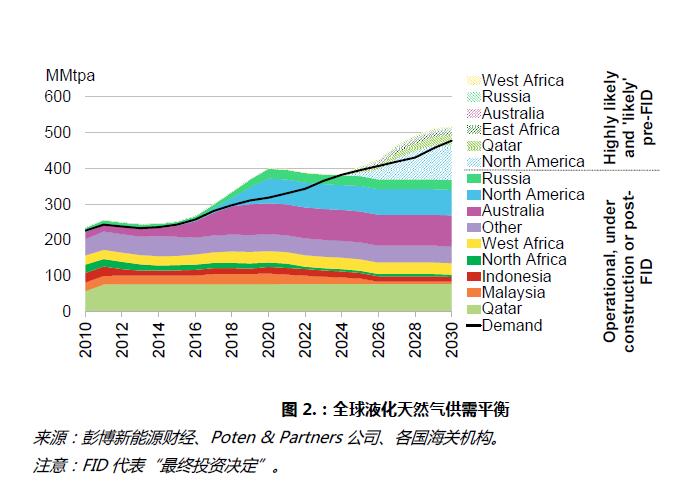 在2024年之前,大量美國和澳大利亞的新投產(chǎn)項(xiàng)目會促使全球LNG供應(yīng)產(chǎn)能不斷擴(kuò)大。在此背景下,盡管全球LNG需求呈持續(xù)上漲趨勢,但卻不大可能出現(xiàn)LNG價格飆升的情況。