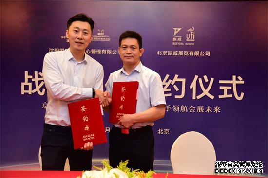 2018年7月10日下午,沈陽(yáng)國(guó)際展覽中心與北京振威展覽有限公司在北京中奧馬哥孛羅酒店舉行戰(zhàn)略合作簽約儀式。沈陽(yáng)國(guó)展總裁劉雨聲、振威展覽股份董事長(zhǎng)張學(xué)山出席簽約儀式并講話,振威展覽股份常務(wù)副總裁鄧小輝主持儀式。