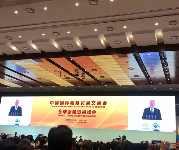 2019年5月28日-6月1日,中國國際服務(wù)貿(mào)易交易會在京盛大開幕。28日上午,全球服務(wù)貿(mào)易峰會在北京國家會議中心召開。2019年中國國際服務(wù)貿(mào)易交易會受到國家主席習(xí)近平的高度重視,專程發(fā)來賀信并指出:中國愿同各國深化服務(wù)貿(mào)易投資合作,促進貿(mào)易和投資自由化、便利化,推動經(jīng)濟全球化朝著更加開放、包容、普惠、平衡、共贏的方向發(fā)展。