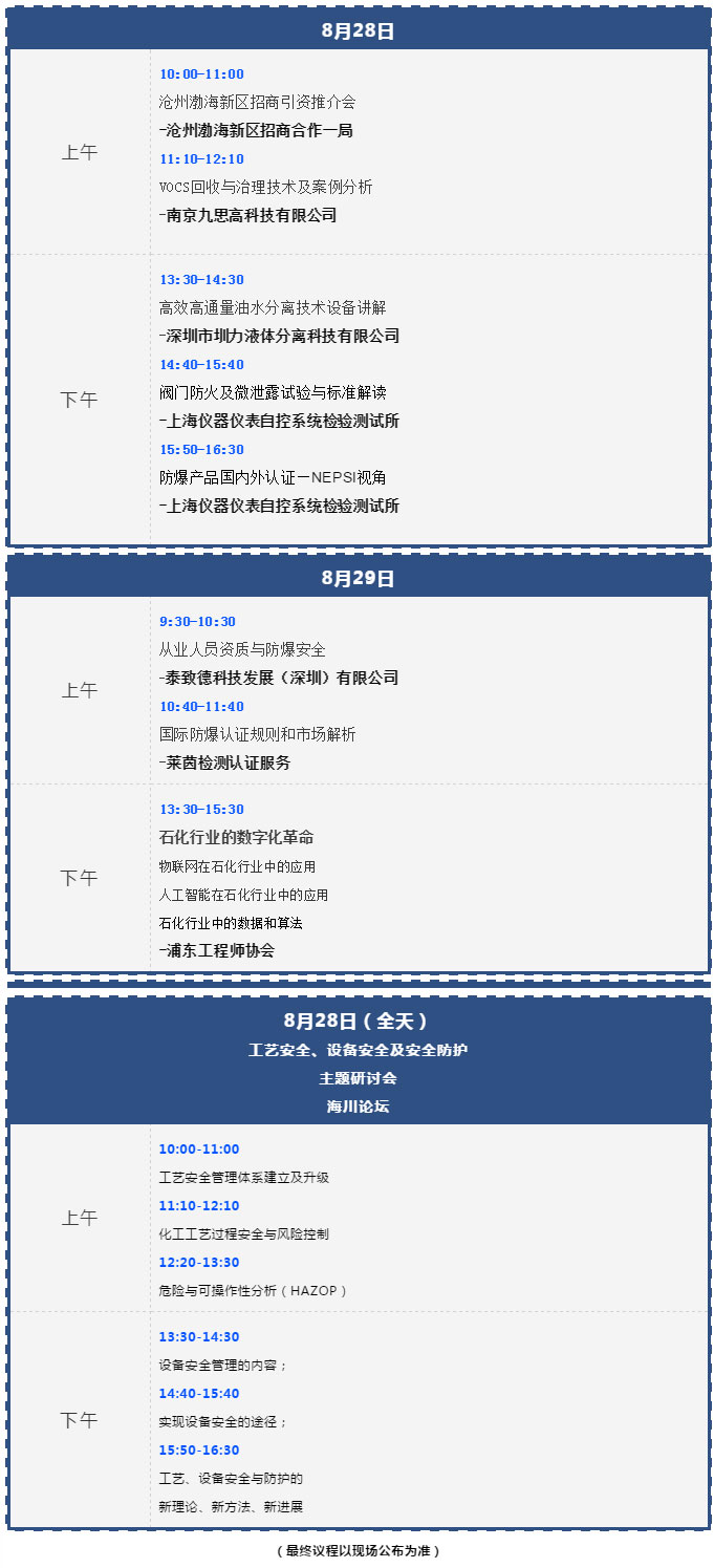 2019年8月28日—30日,第十一屆上海國際石油和化工技術(shù)裝備展覽會(huì)將在中國·上海新國際博覽中心舉行,同期將舉辦多場(chǎng)石化、化工、安防、自動(dòng)化設(shè)備、防爆領(lǐng)域技術(shù)交流會(huì),歡迎業(yè)內(nèi)人士前來交流。