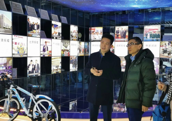 張學(xué)山董事長陪同商務(wù)部服貿(mào)司王東堂副司長參觀振威展覽展廳