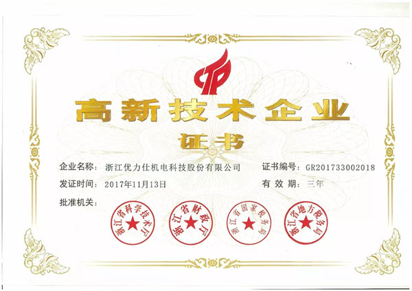 浙江優(yōu)力仕機電科技股份有限公司成立于2014年,是一家專業(yè)自主研發(fā)生產(chǎn)永磁電機及控制系統(tǒng)和各類交流異步電機的國家高新技術企業(yè)。公司坐落于浙江省上虞高 新技術開發(fā)區(qū),注冊資金5000萬人民幣,現(xiàn)擁有員工250余人,各類技術人員80余人。公司與上海交通大學、哈爾濱理工大學、上海電器科學研究所、南陽防爆電氣 研究所等院所建立長期科研合作關系,并在同行業(yè)中較早建立了“院士工作站”。2017年5月,公司成功入選國家工信部“2017年綠色制造集成項目(中國制造2025 )”工程。公司建立了完善的管理體系,先后通過了ISO9001質(zhì)量管理體系、IATF16949汽車質(zhì)量體系、ISO14001環(huán)境體系等多項認證,建立了全面信息化的高效管 理運營體系、規(guī)范的法人治理結構和現(xiàn)代企業(yè)管理制度。
