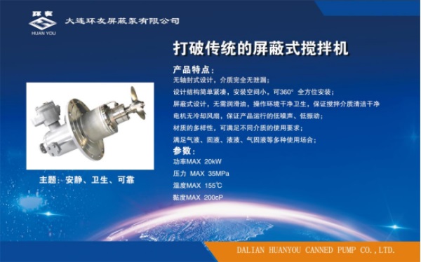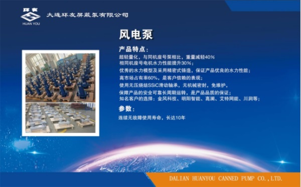 大連環(huán)友屏蔽泵有限公司注重環(huán)境保護,推行6S現(xiàn)場管理,堅持以人為本秉承嚴格苛求的精神,走學習創(chuàng)新的道路,追求世界一流的目標,充滿活力與發(fā)展機會。我公司愿以合理的價位,向國內(nèi)外各界朋友提供高質(zhì)量的產(chǎn)品,高品位的服務。為振興中國民族工業(yè),讓我們攜手,共創(chuàng)美好未來。
