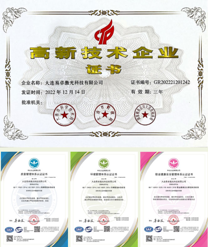 易卓激光成立于 2018年,是一家集研發(fā)、生產(chǎn)和銷售為一體的國(guó)家級(jí)高新技術(shù)企業(yè),國(guó)家級(jí)科技型中小企業(yè)。依托公司高素質(zhì)團(tuán)隊(duì),為全國(guó)多行業(yè)客戶提供高性價(jià)比的技術(shù)產(chǎn)品與專業(yè)優(yōu)質(zhì)服務(wù)。易卓激光是在高新技術(shù)領(lǐng)域內(nèi),持續(xù)進(jìn)行研究開(kāi)發(fā)與技術(shù)成果轉(zhuǎn)化,形成企業(yè)核心自主知識(shí)產(chǎn)權(quán)和產(chǎn)品競(jìng)爭(zhēng)力。