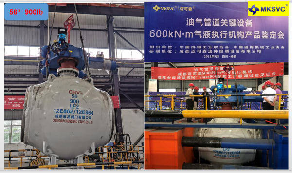 2019年,邁可森公司研制的60萬牛米氣液執(zhí)行機構(gòu),通過由中國機械工業(yè)聯(lián)合會與中國通用機械工業(yè)協(xié)會共同組織的行業(yè)專家鑒定。依照中石油《56″Class900 閥門所配氣液執(zhí)行機構(gòu)技術(shù)條件》和《56″Class900 閥門所配氣液執(zhí)行機構(gòu)工廠試驗大綱》的相關(guān)要求,對邁可森公司研制的600kN·m(60萬牛米)氣液執(zhí)行機構(gòu)與成高閥門56″Class900球閥組對聯(lián)調(diào)進行了見證。鑒定委員會一致同意通過鑒定。認(rèn)為邁可森公司研制的600kN·m氣液執(zhí)行機構(gòu)具有自主知識產(chǎn)權(quán),填補了國內(nèi)空白。