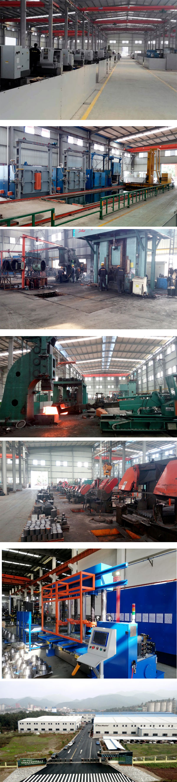 吉安工廠現(xiàn)有90多臺(套)生產設備,有最大下料直徑1200mm的金屬帶鋸床、2500噸電動螺旋壓力機、630噸閉式單點沖床、6噸電液錘及配套機械手一套、2000噸自由鍛機組一套、1噸空氣錘2臺、立式1500mm碾環(huán)機一臺、 熱處理爐5臺、數(shù)控車床及普通車床,鉆床、打字倒角機等。可鍛造最大重量15噸的鍛件,最大直徑到2.5米,年產鍛件可達14000噸。檢測設備有萬能材料實驗機、低溫沖擊試驗機、HR-150A型洛氏硬度計、布氏硬度計、沖擊試樣缺口投影儀、金相顯微鏡等,無損檢測有超聲波探傷、磁粉檢測、液體滲透等??赏瓿僧a品機械性能,低溫沖擊試驗,金相分析,無損檢測等試驗。熱處理爐按照API 6A標準做9點爐溫要求和檢查,熱處理行叉車將淬火入水過程控制在 50秒內,溫度控制由可編程控制器(PLC)系統(tǒng)控制和無紙化記錄儀。