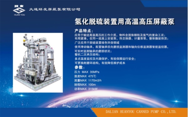 大連環(huán)友屏蔽泵有限公司注重環(huán)境保護,推行6S現(xiàn)場管理,堅持以人為本秉承嚴格苛求的精神,走學習創(chuàng)新的道路,追求世界一流的目標,充滿活力與發(fā)展機會。我公司愿以合理的價位,向國內(nèi)外各界朋友提供高質(zhì)量的產(chǎn)品,高品位的服務。為振興中國民族工業(yè),讓我們攜手,共創(chuàng)美好未來。